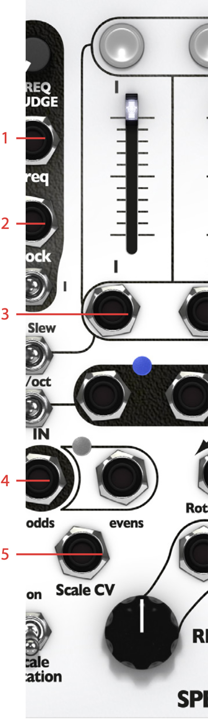 - The Spread CV jack is the external CV input for the spread parameter that can be offset via the Spread knob on the panel.