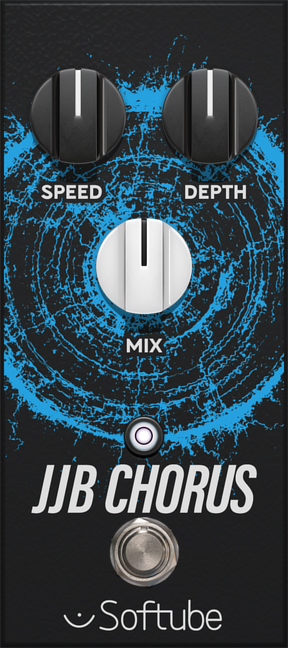 This pedal adds a slight stereo image to a mono sound (if the track output is set to stereo). The Speed knob has a range from 0.3 to 9 Hertz. That’s the rate of the modulation. For reference, a Leslie cabinet rotates at approximately 1 Hertz (slow setting) and 8 Hertz (fast setting). Depth determines the depth of the modulation and Mix takes you from a dry to a fully wet sound.