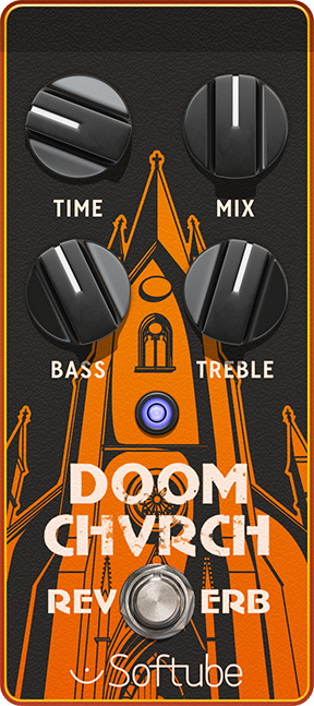 Doom Chvrch is a stereo reverb that will give you a stereo output, even if the input is a mono signal. You can therefore use it in subtle amounts to give some depth to your track. The Time knob provides almost infinite reverberation. Mix adjusts the dry/wet balance and the Bass and Treble controls let you adjust the overall tone of the reverb effect.