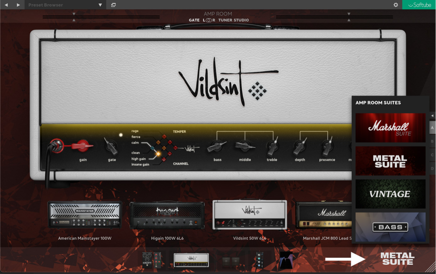 Note: Apart from the gear that is included in the Suite, all Amp Room Ready Softube products that you own will also be accessible automatically inside Amp Room. For a complete list of Amp Room Ready plugins, please see the Amp Room Ecosystem page.