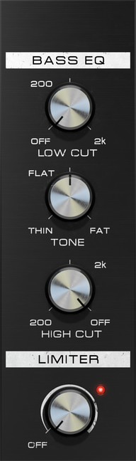 Start sculpting the sound by setting the low cut and high cut to where they sound right, then adjust the tone control from thin to fat according to taste.