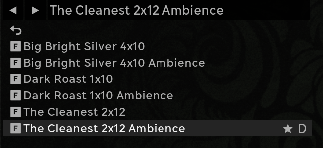 If you own more than one Amp Room Suite, you can switch between Suites by clicking on the Suite selector and selecting another Suite in the list. Choosing a preset from another Suite will automatically switch Amp Room to the Suite where the preset belongs.
