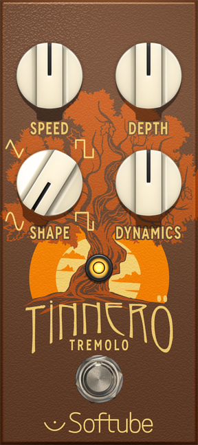 Experiment with the placing of the Tinnerö in the signal chain. Speed adjusts the number of wave cycles per minute, in this case, ranging from very low to very high. The Speed value can in fact be set so slow that striking a note or a chord might coincide with a “quiet” wave phase. Use the Dynamics knob to blend in more of the direct signal to compensate for such events. Also, if Dynamics is turned very high up while playing long notes or chords, the tremolo effect with only appear towards the tail end of what is being played. This is where a high Speed setting works particularly well!