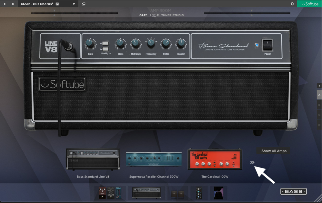 When loading a Suite, only the content that comes with it will show in the amp and cab section. If you own multiple suites, you can always access content from other suites by clicking the "Show all" button in the amp and cab section. Click again to hide non-suite specific content. The pedal and effects sections always show everything.