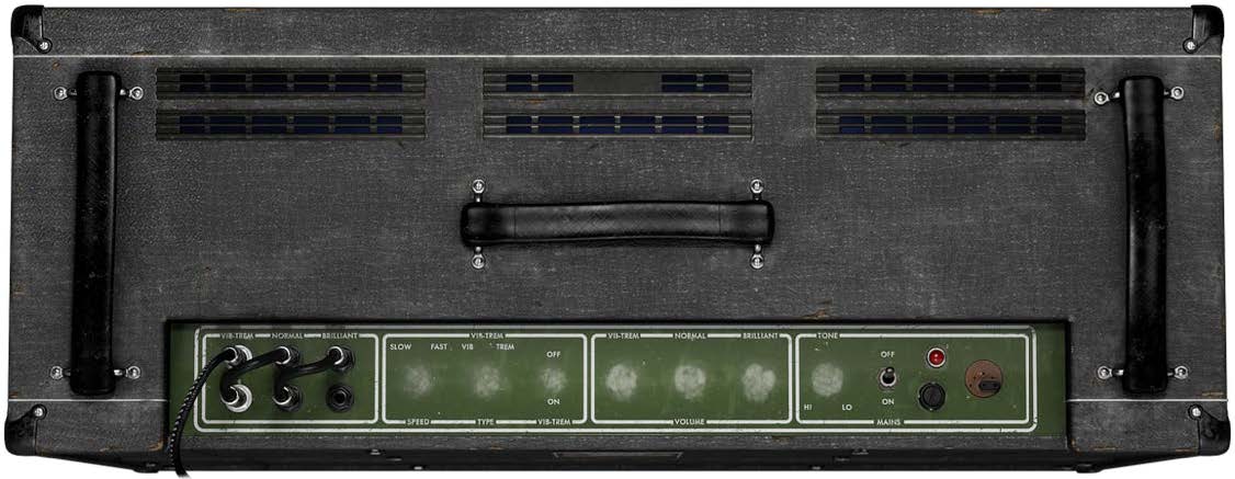A 1964 3-channel, 6-input AC30 “Treble” model. This is a quirky amp, but once you understand the layout it’s quite easy. It has three channels – Vib-Trem, Normal, and Brilliant – with separate inputs.
