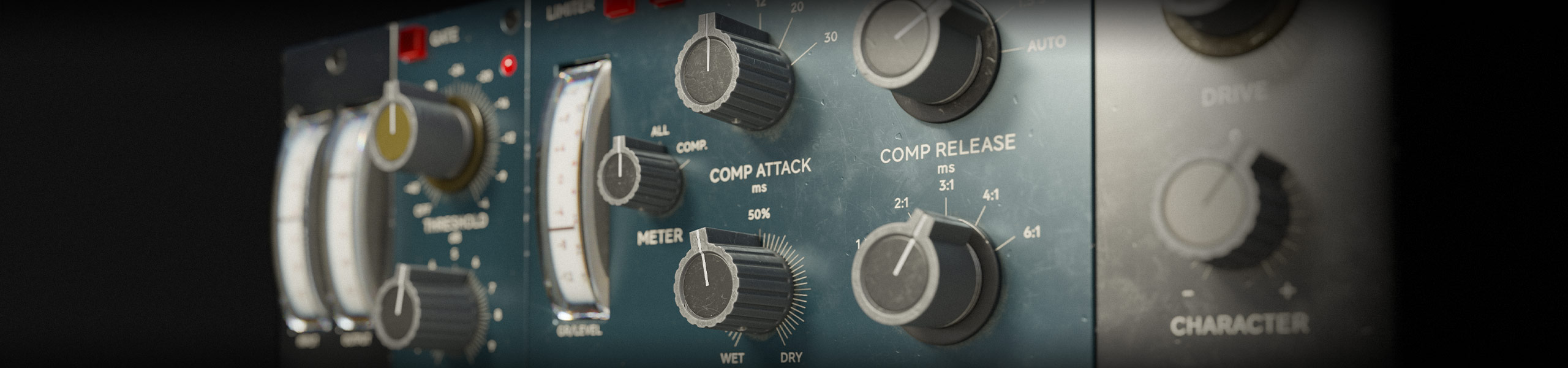 Modeled on a rare yet classic piece of transformer-based, class-A-designed British hardware, the gate does a great job of keeping tracks tight and clean. You can employ it to rid a snare drum track of unwanted bleed or to soften the sound of a kick drum. Using the sidechain input makes the gate super useful for ultra-musical keying purposes.