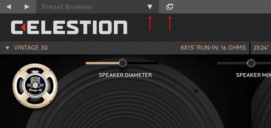 All presets for Celestion Speaker Shaper can be found in Preset Collection. Preset Collection can be accessed by clicking either of the two icons.