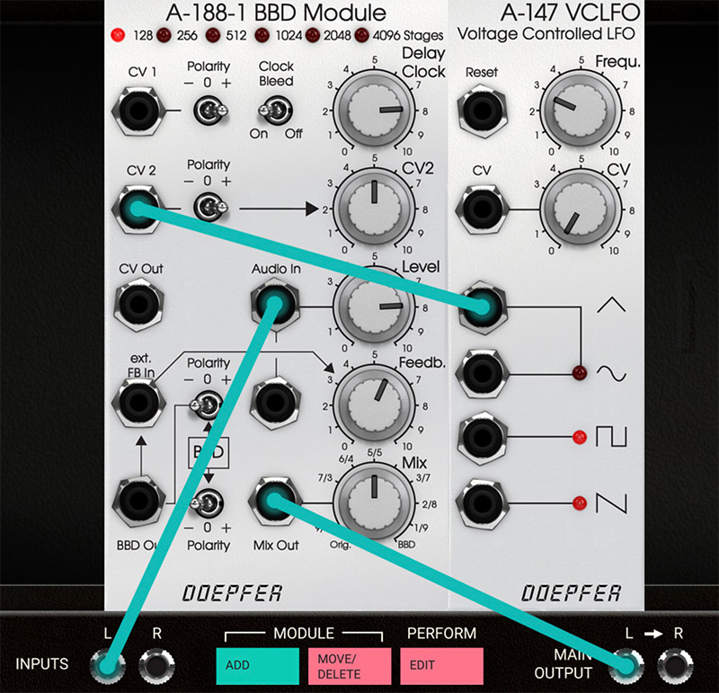 Building a simple chorus using the Doepfer A-188-1 BBD only requires an external LFO to create some movement in the short delay line.