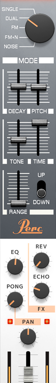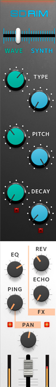Purely generated by modeled analog synthesis and draws inspiration from several early 80s Japanese drum machines. But the ring parameter has been added for the ability to get a more bell-like high pitched ringing sound. All parameters that are velocity controllable in Heartbeat can be CV controlled in Modular.