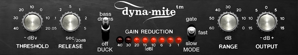 If Dyna-mite’s Duck switch is set to Bass Drums, the audio from the bass drums are being routed to the external sidechain of the Dyna-mite, as well as being mixed together with the output of the Dyna-mite.