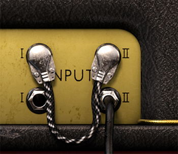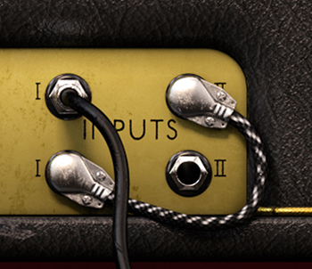 By patching the inputs, you will get different input gain and different tonality from the amp. Input II is very dark sounding, and by combining it with Input I you can work the Volume knobs almost like an EQ.