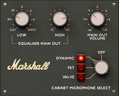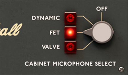 In this position, the cabinet and microphone emulations are bypassed, so that only the direct sound from the Marshall Plexi amplifier head is heard. This setting is useful when combining this amp with other cabinet/microphone models.