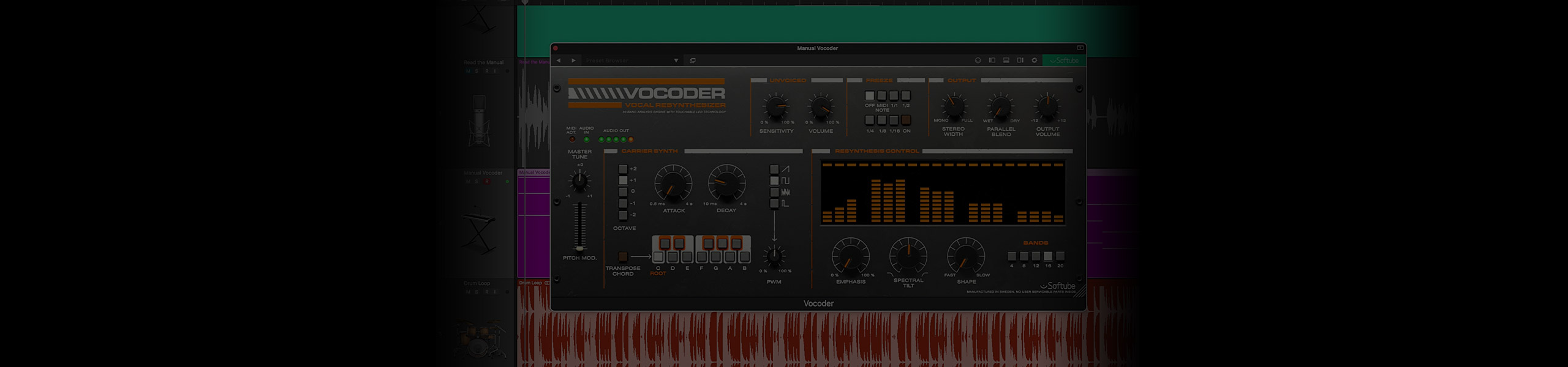 Softube Vocoder hooks the imagination with the look and feel of vintage vocoders. MIDI capability enables you to record and reproduce the notes that the stellar carrier synth will perform. Softube Vocoder is not an effect that mimics vocoding sounds. Softube Vocoder is true vocoding. Masterful on a multitude of sources—including drums—Vocoder's vintage tone and ease of use make Vocoder suited to electronic and pop music production. Play outside of the box in the box—or live—with a futuristic instrument that has become a retro classic.